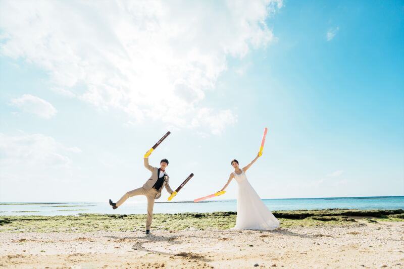青い海や空、そして独特の文化を持つ沖縄の自然の中での前撮り。